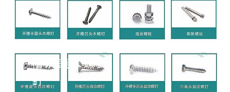 木螺釘有十字槽沉頭、十字槽半沉頭、十字槽圓頭、開槽(一字槽)沉頭、開槽半沉頭、開槽圓頭、六角頭等幾種,公稱直徑有1.6、2、2.5、3、3.5、4、5、6、7、8、10等系列,長(zhǎng)度有6、8、10、12、16、20、25、3