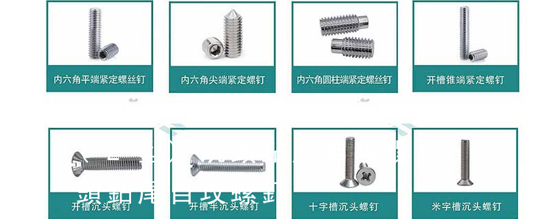 (鐵板牙自攻螺絲) B-2: Plastic Tapping Screw. (塑膠用,自攻螺絲) C: Wooden Screw : 木工螺絲 D: Drywall Screw :水泥墻螺絲 E: Self Drilling Screws鉆尾螺絲(不銹鋼鉆尾螺絲,復合材料鉆尾螺絲) F:膨脹螺絲,四片膨脹螺絲又
