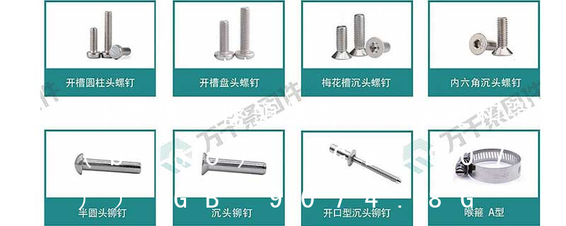 1.GB/T15856.4-1995六角法蘭面自鉆自攻螺釘 2.GB/T78-1985內(nèi)六角錐端緊定螺釘 3.GB/T79-1985內(nèi)六角圓柱端緊定螺釘 4.GB/T837-1988開槽盤頭不脫出螺釘 5.GB/T84-1988方頭凹端緊定螺釘 6.GB/T9074.3-1988十字槽盤頭螺釘和彈簧墊圈組合件 7.GB/T9074.7-1988十字槽小盤頭螺釘和彈簧墊圈 擴展資料 一個螺釘只配一個彈墊或只配一個平墊,或者還可以只配一個花齒的二組合件。組合螺釘國標(biāo)號用GB9074表示。常用的十字槽小盤頭三組合螺釘國標(biāo)號是GB9074.8。 組合螺釘?shù)牟馁|(zhì)有分為鐵的和不銹鋼的。 鋼結(jié)構(gòu)用高強度大六角頭螺栓組合螺釘,主要用于鐵路和公路橋梁,鍋爐鋼結(jié)構(gòu),工業(yè)廠房,高層民